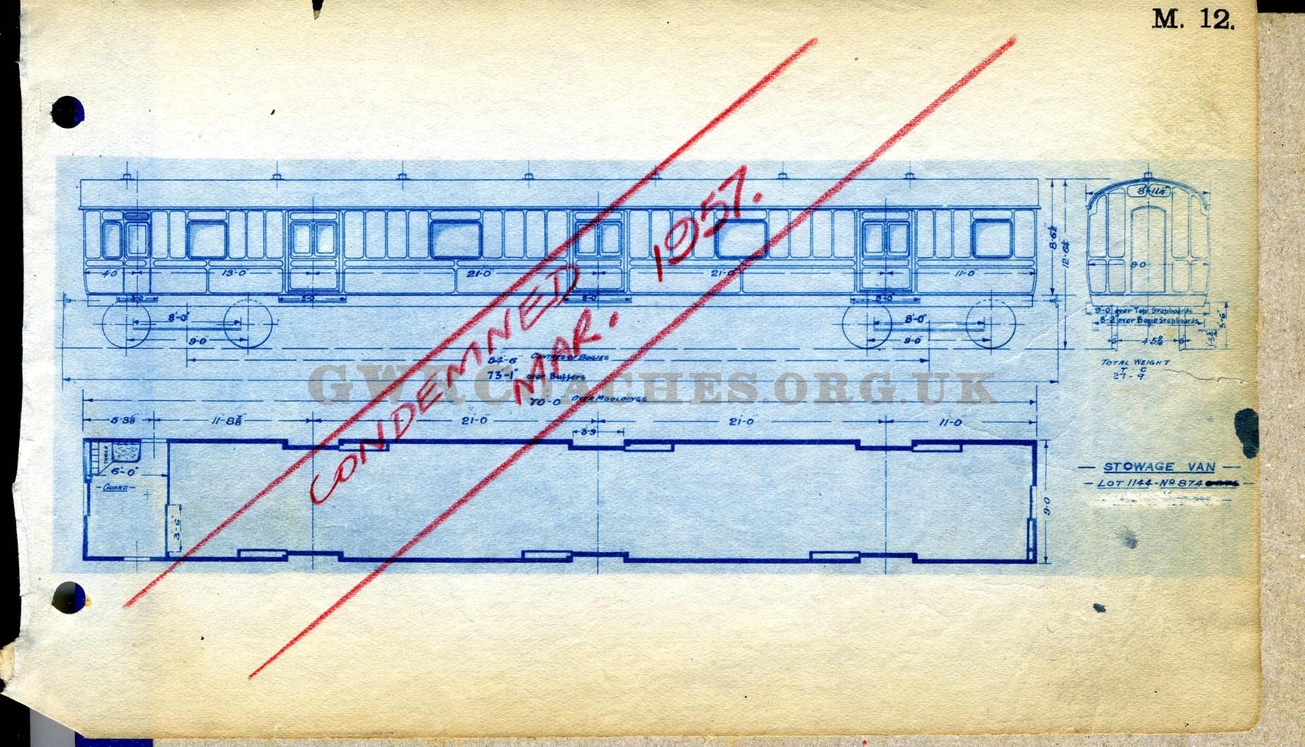 Stowage Van | 70' x 9' 12'6 6 wheel American bogies 63'6 wheelbase |