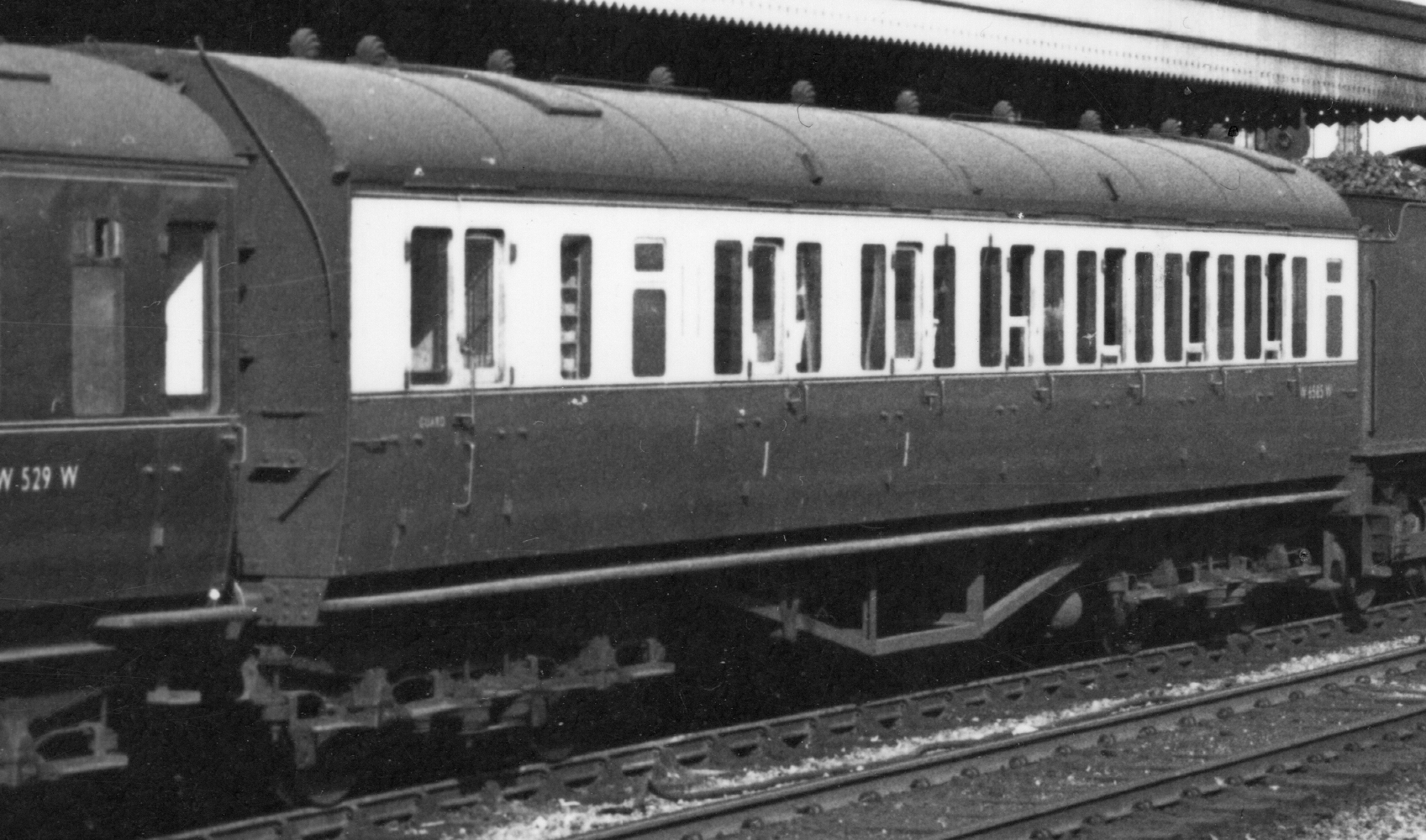 in like many GWR coaches. These coaches were not bow-ended which only added to them looking like boxes. The doors had normal handles and the guard's doors were not recessed. Towards the end of 1933 it was